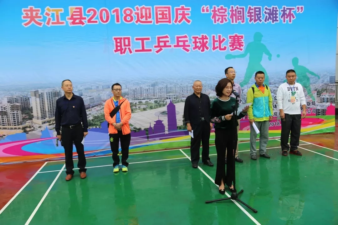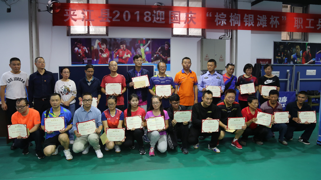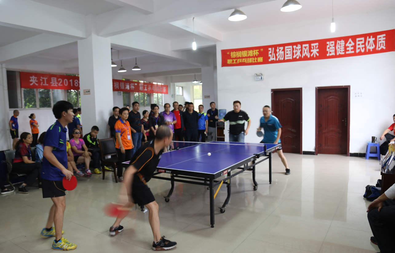 9月27日至29日,为深入学习宣传贯彻党的十九大精神,隆重庆祝中华人民共和国成立69周年,凝聚广大职工群众力量,积极推进全县乒乓球运动的发展,增强人民体质,夹江县举行2018迎国庆“棕榈银滩杯”职工乒乓球比赛。