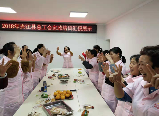 为进一步扶持困难职工、农民工、下岗失业人员从事家政服务工作,引导更多的女性在家政服务领域自主就业,由夹江县总工会主办,夹江县就业服务管理局、乐山市新力职业学校承办的“夹江县总工会2018年职业技术·家政服务培训”,于2018 年10月18日至11月15日在夹江县妇女儿童中心举行。