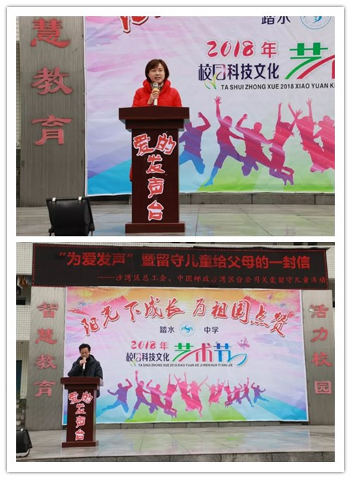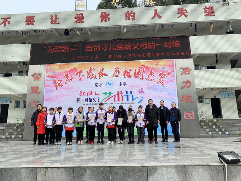 为帮助解决困难农民工的实际困难,让他们感受到党委、政府的关心和工会组织的温暖,同时也帮助留守儿童排遣思亲之苦,让留守儿童倾吐思亲之情,让在外打工的父母们放心,12月26日,区总工会、区邮政公司联合踏水中学共同开展了主题为“为爱发声”暨留守儿童给父母的一封信活动。区总工会党组成员、副主席吕利群、区委教育工委副书记、教科局党组成员刘智、踏水中学党支部书记、校长张锦华、中国邮政集团公司乐山市沙湾区分公司总经理吕超参加此次活动。