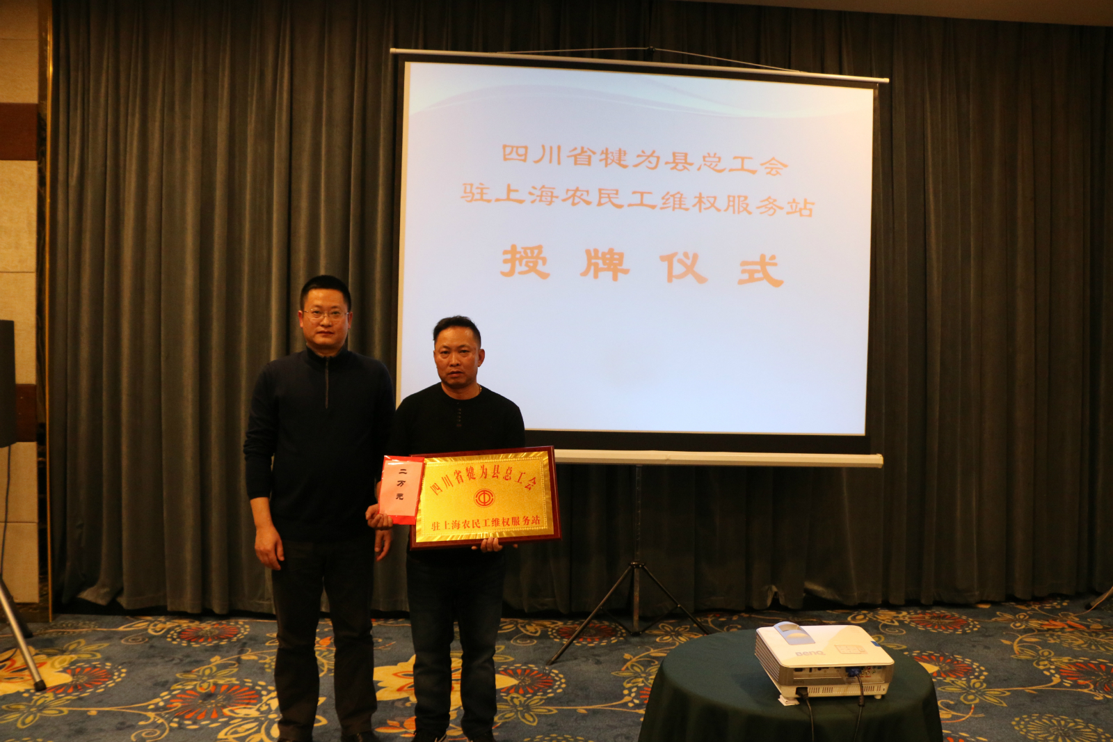 会末,还举行了犍为县总工会驻上海农民工维权服务站建站授牌仪式。