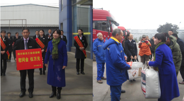 1月9日上午,省纪委监委驻省总工会纪检监察组组长、省总工会党组成员钟验鹰一行到市中区开展“送温暖”慰问活动,并召开“八大群体”及农民工慰问座谈会,向四川沿森物流集团股份有限公司送去慰问金5万元,亲切看望慰问一线农民工、“八大群体”职工代表2名,送去价值4400元的慰问金和慰问品,送去了党委政府和工会组织的关心关爱。市总工会党组成员、副主席张雷,区总工会常务副主席金天军陪同出席活动。