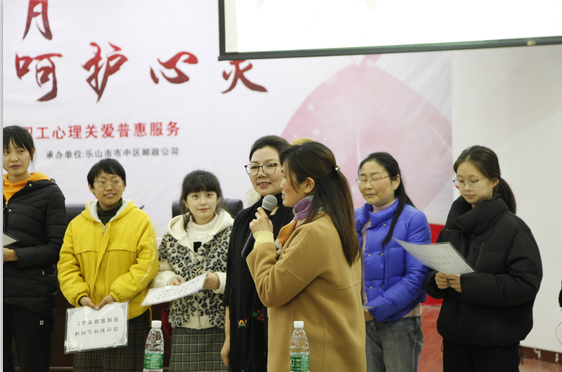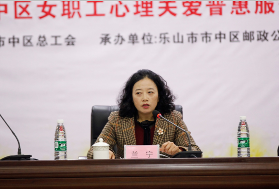 3月7日,在第109个“三八”国际妇女节即将来临之际,由市中区总工会主办,市中区邮政公司承办的2019年“温情三月,心灵呵护——乐山市市中区总工会关爱女职工心理服务”普惠活动在乐山市邮政公司6楼会议室举办,来自市中区各街道、乡镇和机关企事业单位的120名女职工代表参加活动,市总工会党组成员、副主席、女工委主任兰宁出席并讲话。