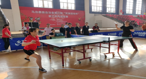 4月24日上午9时,小凉山马边彝族自治县第三届“民族团结杯”职工乒乓球联赛在县体育馆开幕。本次联赛由县总工会、县民族宗教事务局、县文化体育和旅游局主办,县老年人体育协会承办。来自全县各乡镇、县级部门、县属企事业单位的25支代表队129名运动员参加比赛。