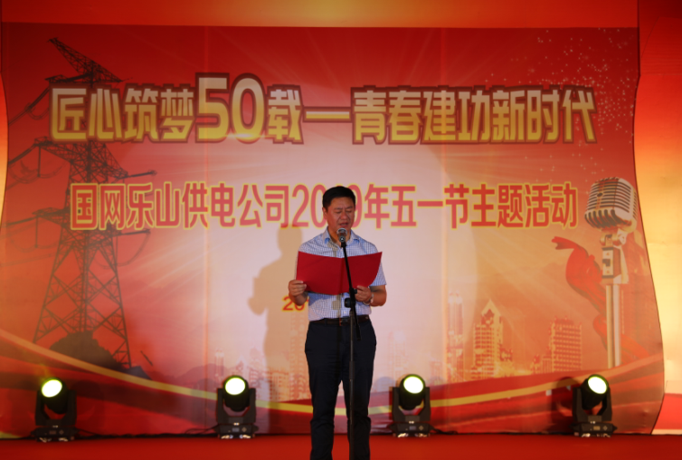 国网供电公司总经理林双庆致辞中,他代表公司领导班子,对阿刘主席的莅临表示热烈的欢迎,向广大职工致以节日的问候和诚挚的慰问。同时表示,劳动模范是劳动群众的杰出代表,是每个时期的最美劳动者。劳模精神价值千金,劳动精神历久弥新。劳模是在普通的岗位上,把对劳动的热爱融入工作,才创造出了超然的业绩、书写了别样的精彩。他还号召全体干部职工学习劳模精神,提倡的是“撸起袖子加油干”,要以“愿干”提升境界、以“敢干”展示气魄、以“会干”增强实效,践行努力超越、追求卓越精神。也希望公司的劳模以及工匠再接再厉,始终保持昂扬奋斗的姿态和热情,在新的起点上创造更加优异的成绩。用辛勤奋斗谱写“一流国网”的乐山篇章,以优异成绩为新中国成立70周年、公司建立50周年献礼!