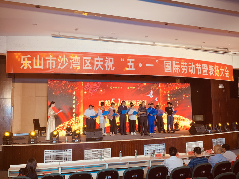 为庆祝“五一”国际劳动节,大力弘扬劳模精神、劳动精神、工匠精神,4月30日,乐山市沙湾区庆祝“五一”国际劳动节暨表扬大会在德胜科技大楼隆重召开。区委常委、统战部部长赵彬,乐山市总工会党组成员、经审会主任程学铭、区政协副主席钟少兵、区人大常委会党组副书记宋志彬,中国邮政集团公司乐山市邮政分公司副总经理盛建明、中国邮政集团公司乐山市沙湾区分公司总经理贾华等领导出席大会。全区各乡镇、办事处(园区)工会联合会主席,部分机关、企事业单位工会主席,劳模、工匠代表,职工代表等400多人参会。