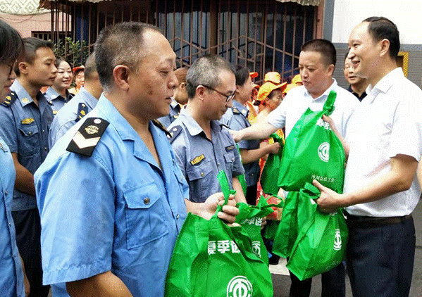 启动仪式上,慰问组亲切慰问了奋战在高温一线的沐川县行政执法局、沐川县交通警察大队、环卫工人职工,并把防暑降温物资发放到他们手中。“谢谢,太感谢了,那么热的天气来关心我们,还给我们带来了防暑降温的物品,我们一定在自己的工作岗位上好好干,把我们的‘家’清洁的更干净,给大家营造更为舒适的环境……”领到清凉“大礼包”的环卫工人欧胜六感到特别高兴。