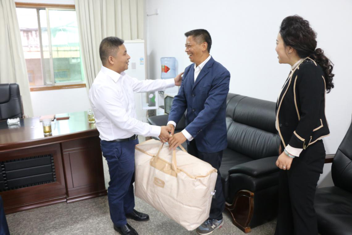在农业局宿舍,慰问组一行走进全国粮食生产先进个人袁涛家中。何毅与袁涛进行了亲切的交谈,对袁涛多年来兢兢业业奉献在最基层,为我县农业农村发展作出的突出贡献给予了充分的肯定和高度赞扬。