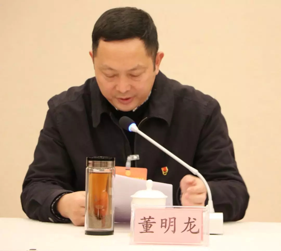 县委常委、统战部部长、县总工会十届委员会主席董明龙作《工作报告》