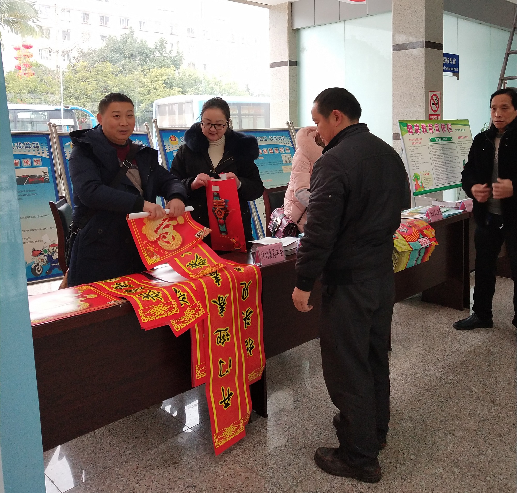 为弘扬中华优秀传统文化,丰富广大职工群众精神文化生活,近日,沐川县总工会深入县文化广场、县客运中心站、乡镇集市等人流密集点开展了“送万福进万家”活动,向广大职工群众送“福”字、送春联400余幅,切实把关怀和祝福送到千家万户。