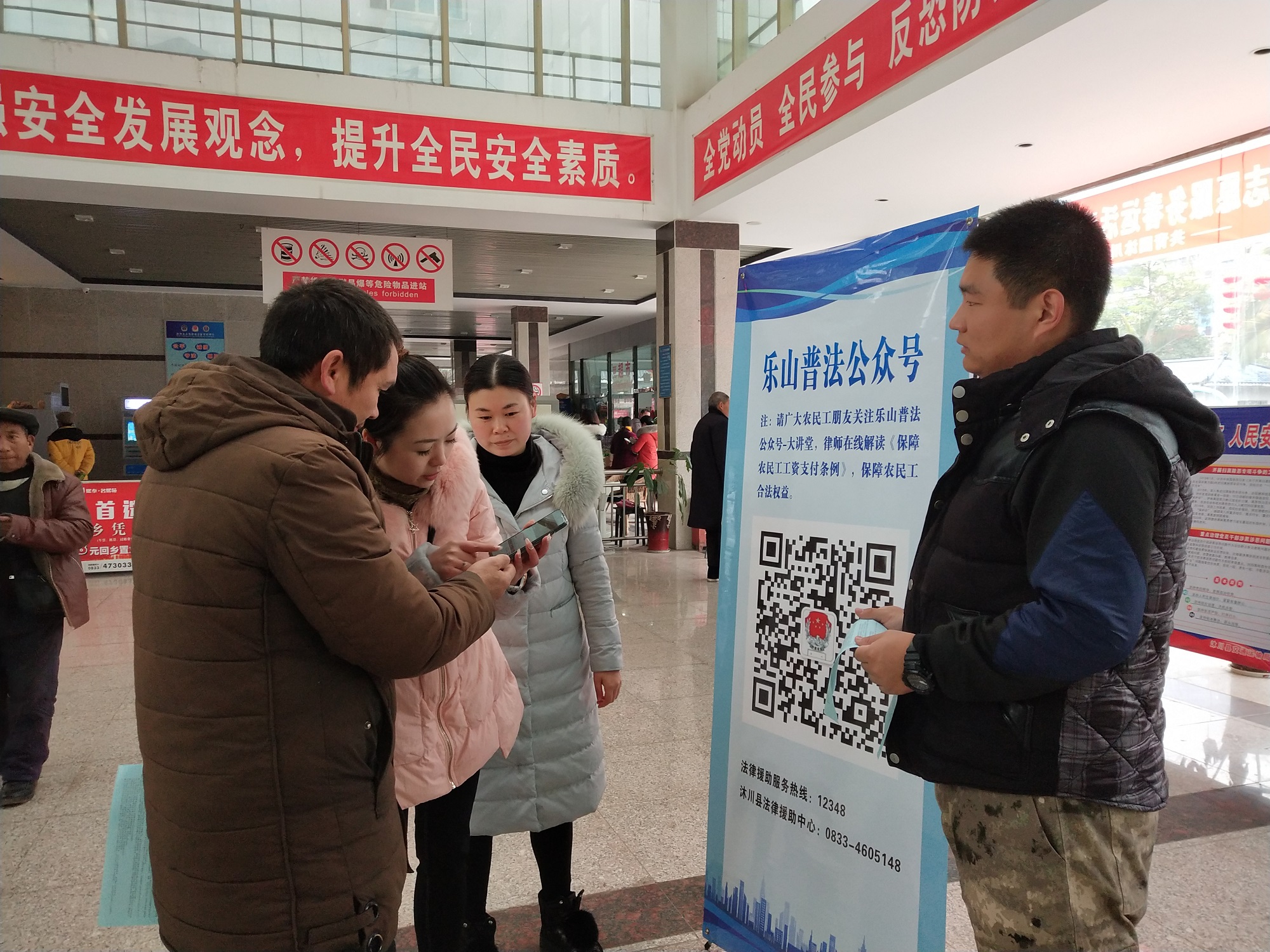 岁末年初,为进一步做好新形势下为农民工法律服务工作,维护农民工的合法权益,2020年1月16日,县总工会联合县司法局组成农民工公益法律服务行动队,深入县客运中心站开展“法律惠民生、助力农民工”专项法律服务活动。