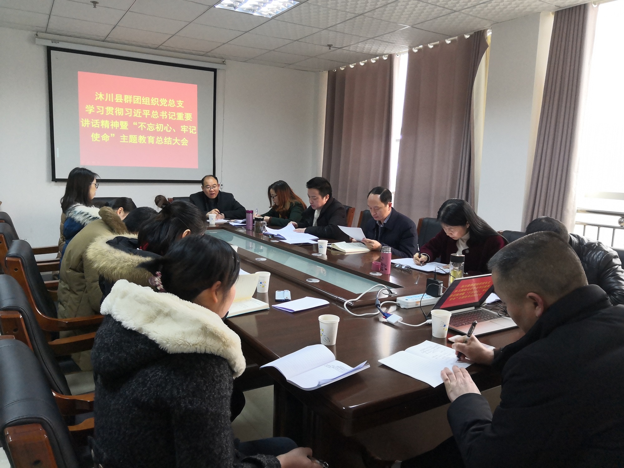 1月21日,沐川县群团组织党总支召开学习习近平总书记重要讲话精神暨“不忘初心、牢记使命”主题教育总结大会。党总支委员、各支部书记、各群团部门领导班子及机关党员干部参加会议,县委常委、总工会主席杨建春,县委第六巡回指导组组长邢国凤出席会议。