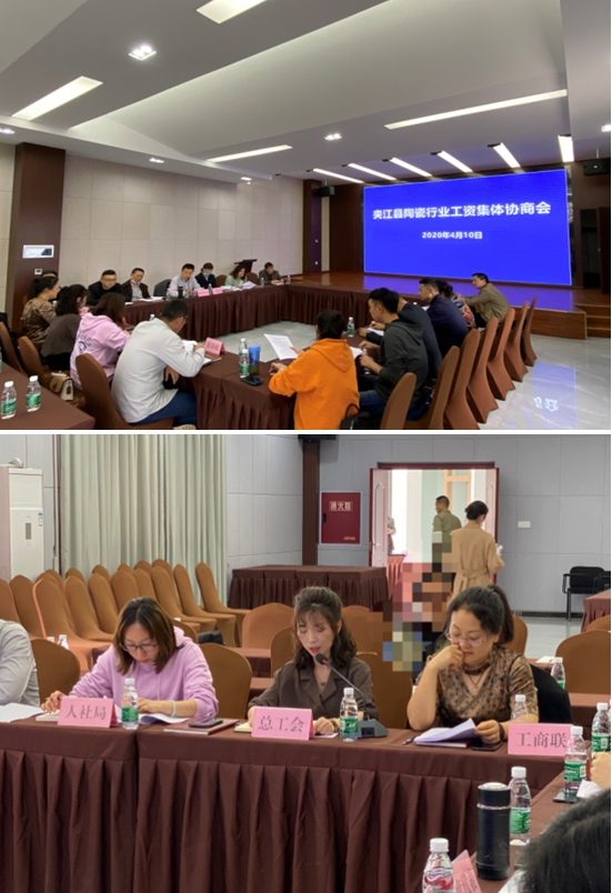 近日,由夹江县总工会牵头举行的2020年陶瓷行业工资集体协商会,在盛世东方陶瓷艺术中心成功举行。会议经充分协商讨论,以举手表决的方式,一致通过了《夹江县陶瓷行业2020年工资集体合同文本》,决定全县陶瓷行业工资标准上涨3%。