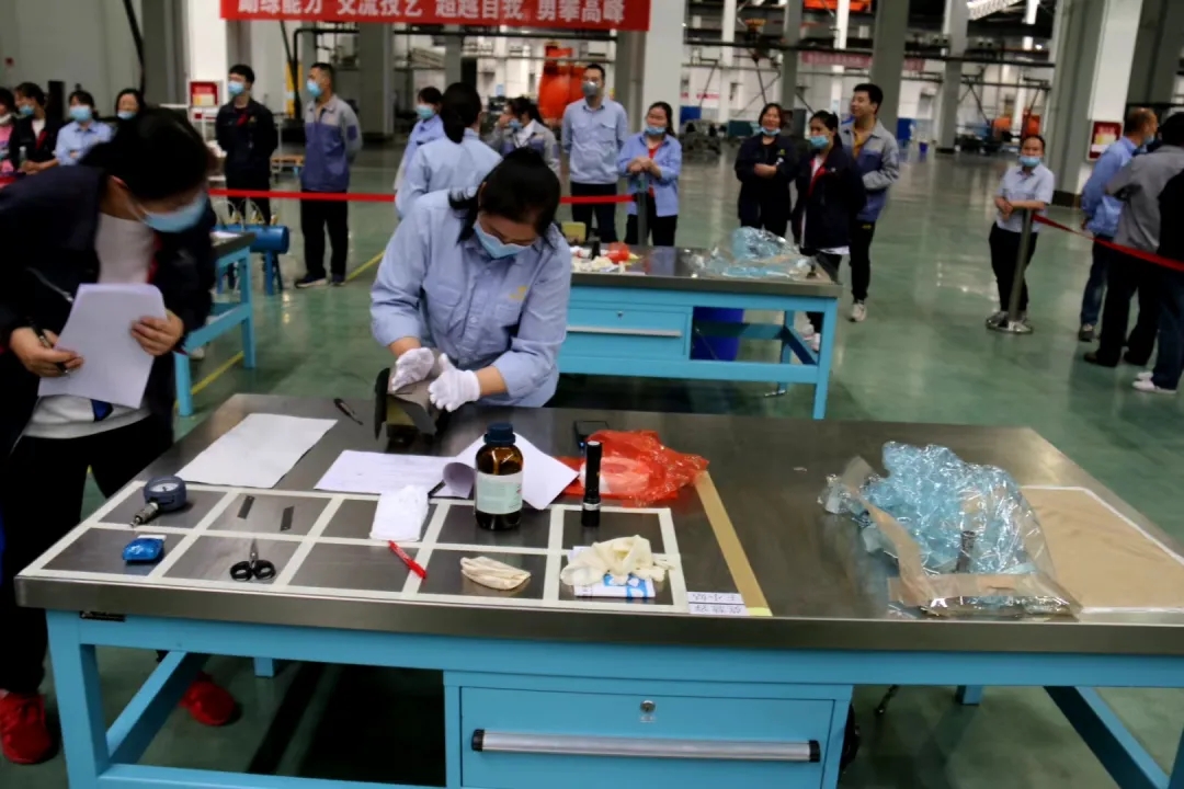 技能实操比拼现场可谓是精彩纷呈,选手们都纷纷展示出了超高的技艺。其中打预抽袋、零件脱模、切割技能三项比赛同时进行,每组比赛6人同时操作。选手们全神贯注、有条不紊地按照操作规程和要求进行操作,稳扎稳打、沉着冷静、各显神通将所学的本领展现得淋漓尽致。现场观众摒气凝神、学习观摩,不放过任何一个汲取经验的精彩瞬间。