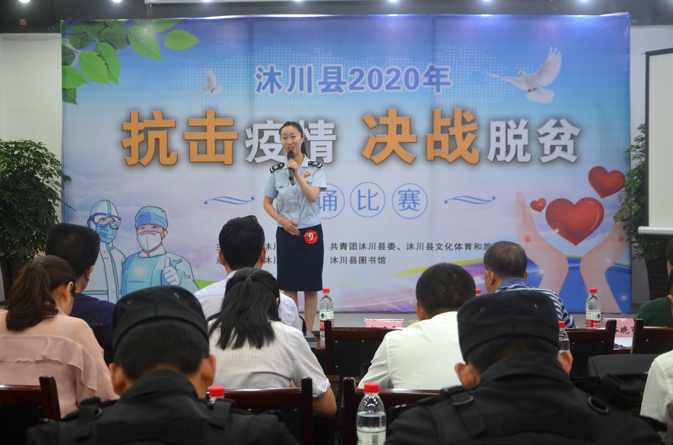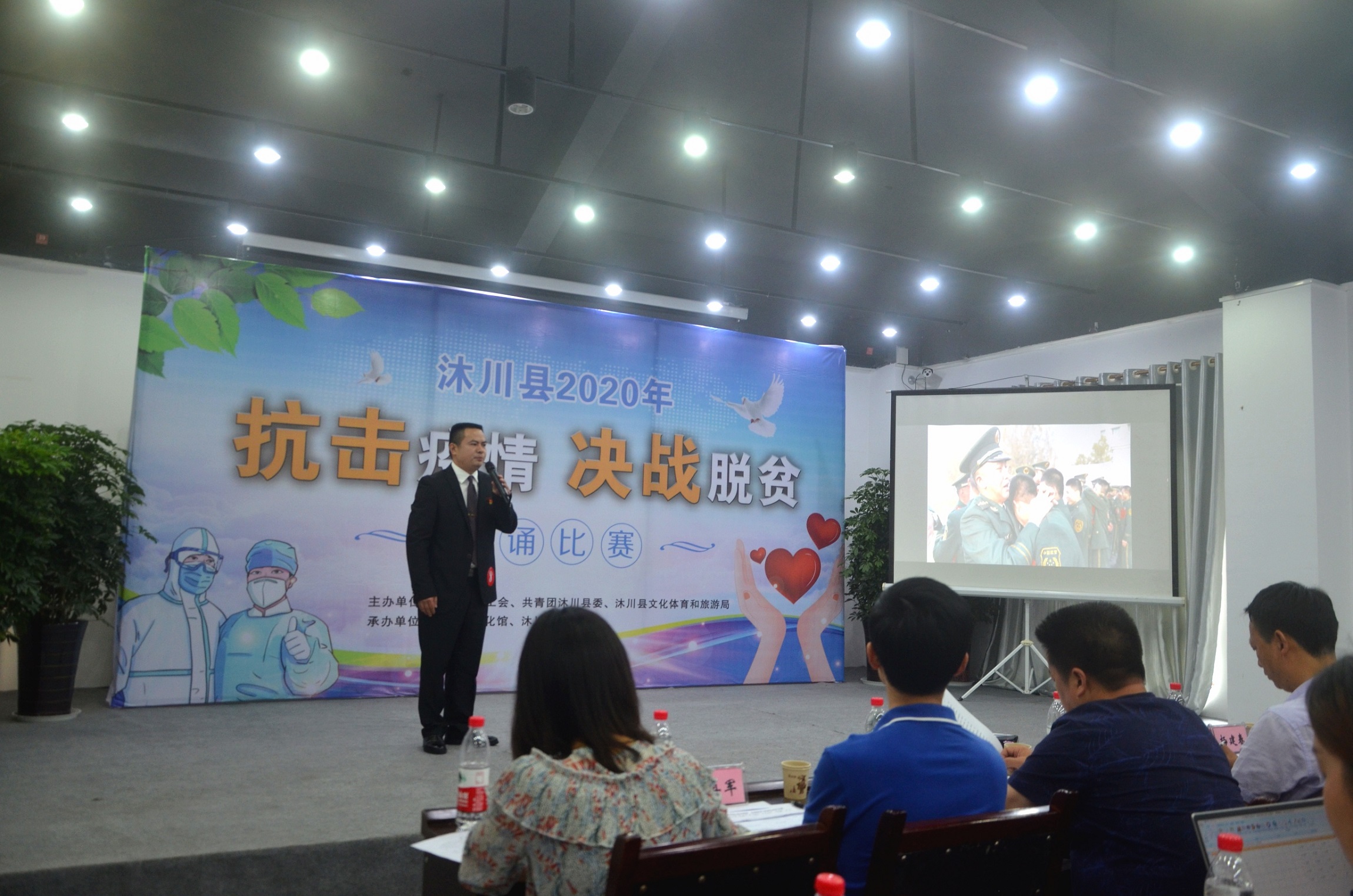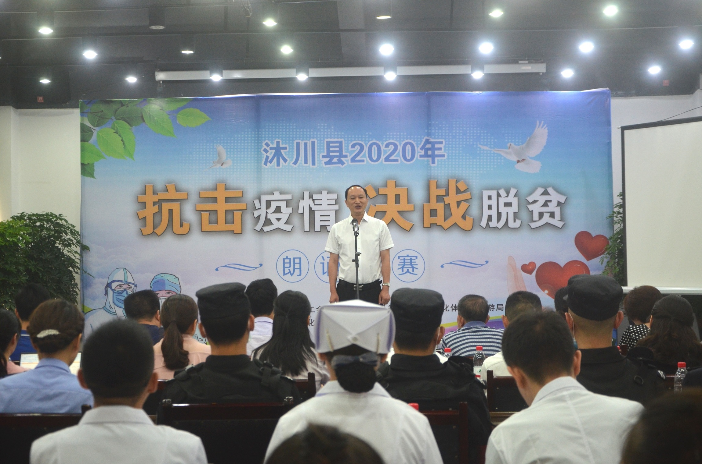 5月14-15日,沐川县总工会、共青团沐川县委、沐川县文化体育和旅游局在全县联合举办的以“抗击疫情决战脱贫”为主题的朗诵比赛在沐川县美术馆举行。来自全县乡镇、机关和医院、学校等企事业单位的广大干部职工和青年踊跃参与,纷纷施展各自才智,用激情讴歌时代,用智慧凝聚力量,共同唱响抗击疫情,决战脱贫的主旋律。县委常委、县总工会主席杨建春参加活动并讲话。