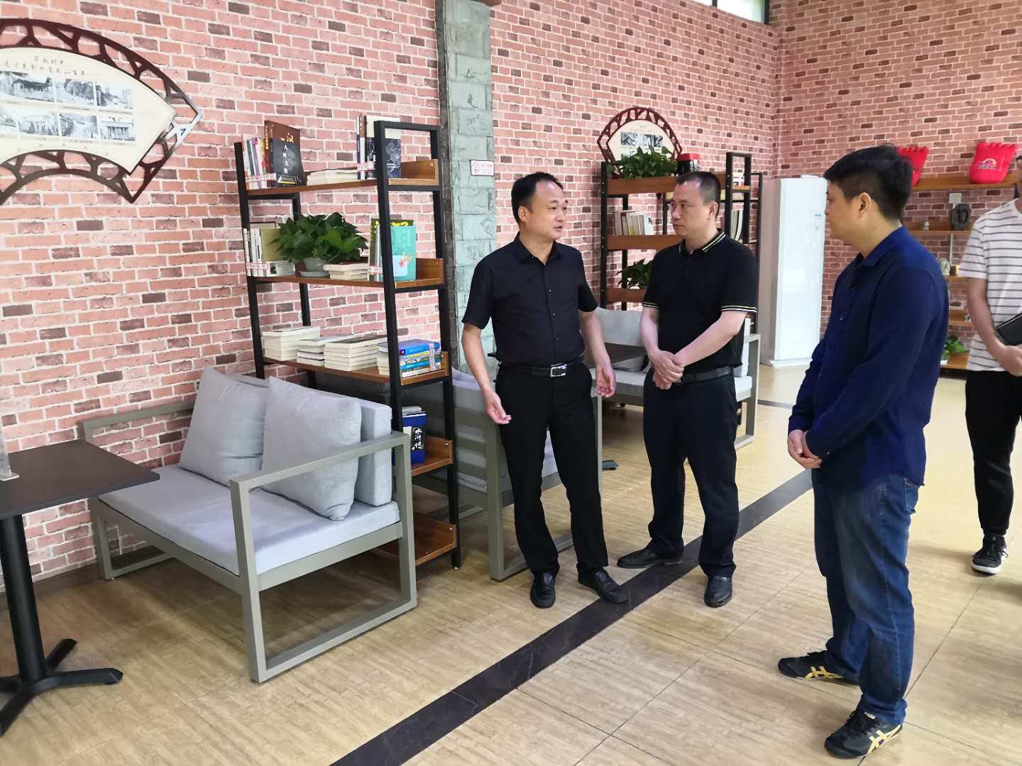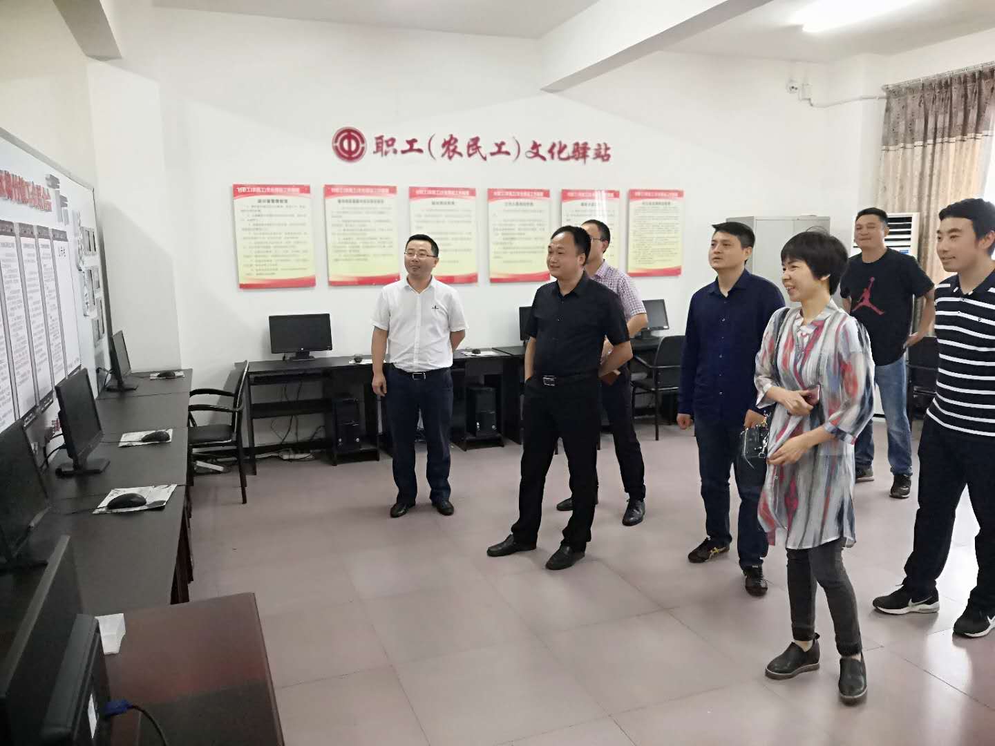 李向红在棉竹镇棉竹铺社区察看职工(农民工)文化驿站