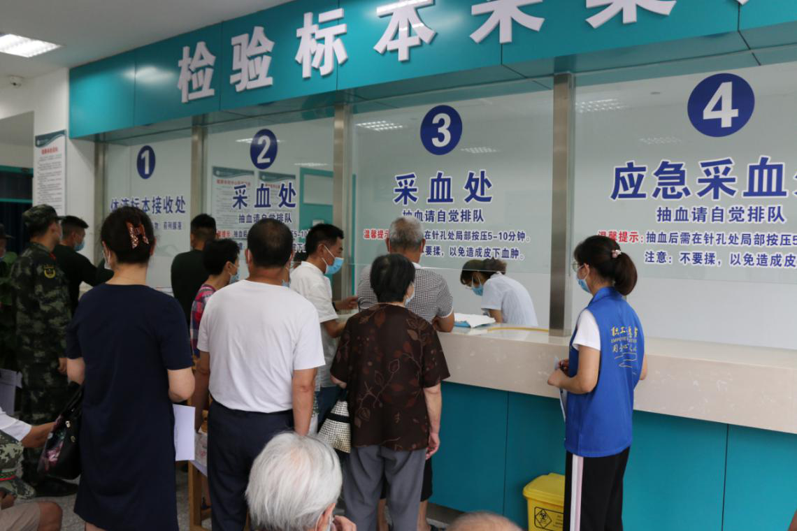 职工志愿者引领劳模有序参加健康体检