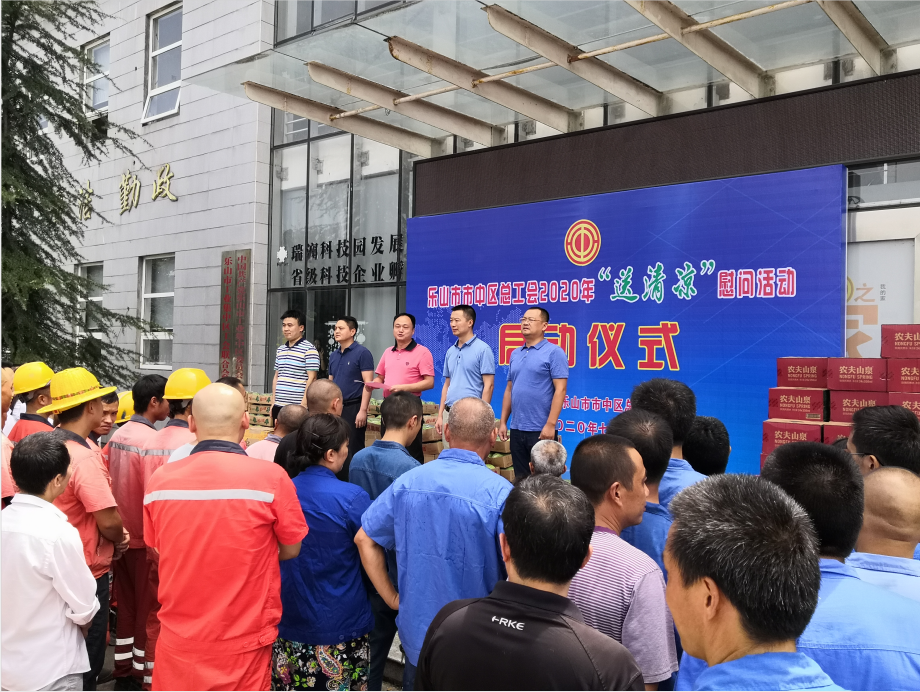 7月28日,乐山市市中区总工会2020年“送清凉”慰问活动在乐山市工业集中区正式启动,区委常委、区总工会主席李向红出席了启动仪式并致辞,区总工会常务副主席朱冰、区经信局党组书记李文华参加仪式。
