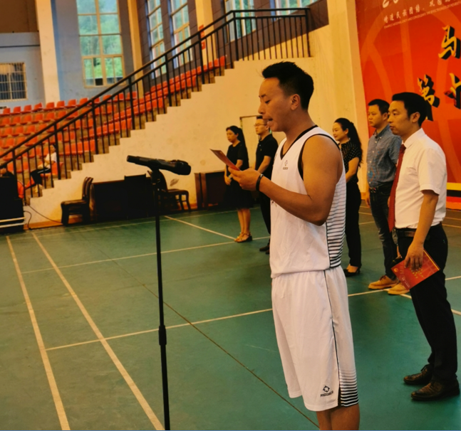 在开幕式上,裁判员代表和运动员代表分别代表全体裁判员和运动员宣誓。
