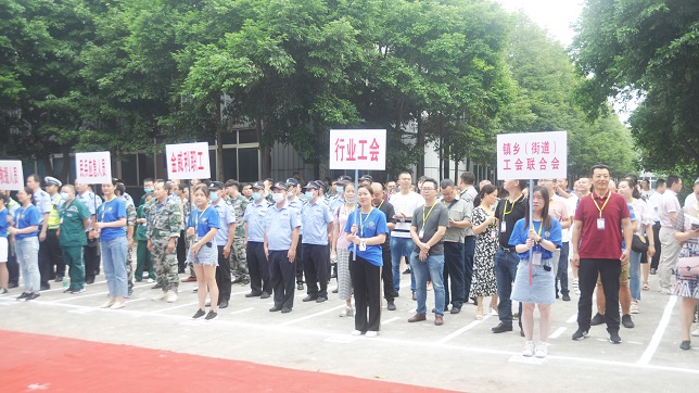 为提高我市职工群众消防安全意识,切实提升消防应急处理能力,确保消防安全工作落实落地,有效防范和遏制事故的发生,2020年8月20日上午,峨眉山市总工会2020年深化安康杯竞赛活动暨消防救援演练活动在金威利运动用品有限公司隆重举行。市总工会、市应急局、市卫健局等9家部门及企业主要领导参加活动启动仪式。同时,40余家基层工会到现场观摩消防演练。