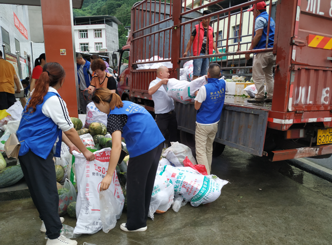 近日,乐山境内普降大雨,受“8.18”特大暴雨影响,五通桥区、犍为县等地遭受了严重的洪涝灾害。8月24日,在马边县总工会的号召下,马边职工志愿者闻“汛”而动,穿上标志性的工会蓝马甲,组织了荍坝镇广大群众自发为五通桥区冠英镇捐赠了2万余斤爱心蔬菜,为全市打赢防汛攻坚战贡献一份马边力量。
