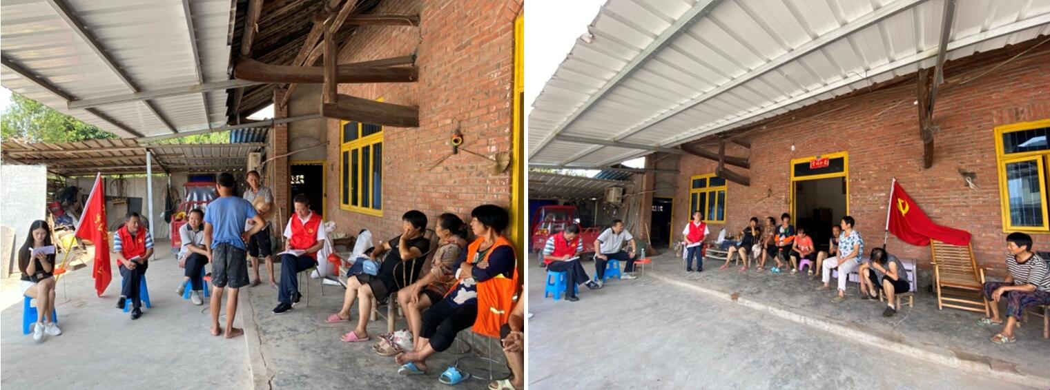 活动中,党旗迎风飘扬,机关全体党员干部佩戴党徽,集结受灾群众,开展灾情民意收集及政策宣讲工作。一是收集诉求。党员志愿服务队认真倾听受灾群众讲述家中农作物受灾程度、房屋及电器家具受损情况,并认真做好统计记录。服务队针对受灾群众提出的需要解决或协调解决的诉求给予答复和解决,对暂不能解决的做好解释工作的同时进行梳理登记,及时反馈。当天收集群众的诉求和意见建议12件,现场答复和解决5件,其余7件提交木城镇、县级有关部门,积极跟踪并协调解决。二是宣传政策。志愿服务队现场宣讲有关灾后重建政策,宣讲县委县政府部署和各级各部门社会各界的帮扶举措,现场讲解紧急避险和防疫知识,引导群众提高应急自救意识,对今后一段时间可能出现的洪涝灾害做好应对,鼓励他们互助互帮,积极恢复正常的生产生活秩序。三是入户调查。党员志愿服务队深入到部分严重受灾群众家中实地查看房屋受损情况,排查风险隐患,并做好登记汇总,积极争取各级帮扶。