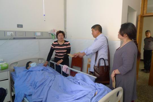 五通桥区群团部门看望慰问白血病患者杨广东