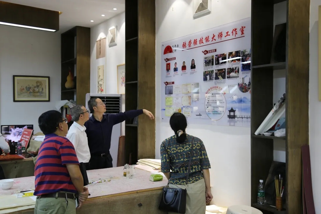 在夹江县年画研究所,黄国兵一行认真察看“张荣强劳模和工匠人才创新工作室”建设情况,饶有兴致地体验夹江年画制作,对工作室成效和夹江年画精湛的传统工艺赞不绝口。他指出,工作室要带好头,培养梯次人才,加强年画创新和推广交流,推进夹江年画传承与发展。