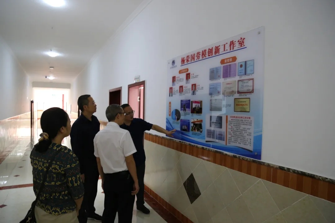 黄国兵(左三)指导“杨荣国劳模创新工作室”建设