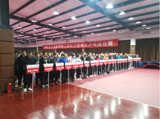 为进一步推进干部职工健身活动广泛开展、提高干部职工身体素质、丰富干部职工文体活动、增强干部队伍的凝聚力和战斗力,由市直机关工委、市体育局、市总工会联合主办的乐山市市直机关第三届职工运动会乒乓球比赛,于11月5日至6日在乐山市职工文体活动中心成功举办。市直机关各单位高度重视,积极组队参赛,共有26支球队、150余名运动员参加比赛。市委常委、常务副市长黄平林宣布比赛开赛,市直机关党工委常务副书记王茜,市总工会党组书记、常务副主席黄国兵,市体育局党组成员、副局长石继忠等出席开赛仪式。