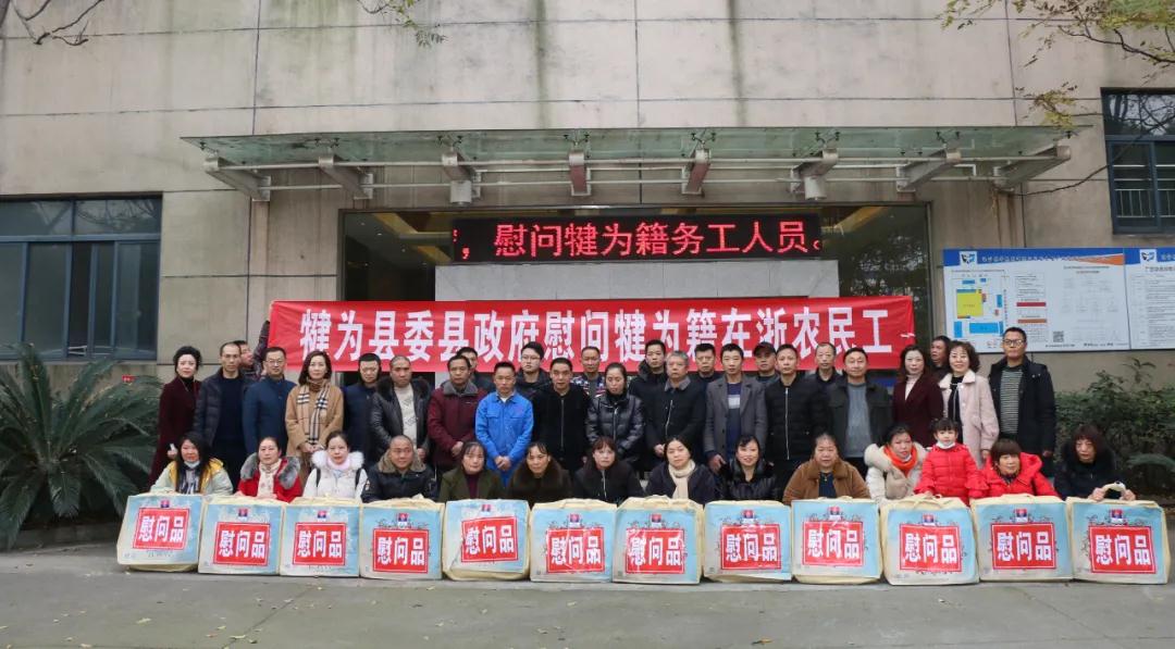 为认真贯彻落实中央“六稳”工作要求,落实“六保”工作任务,进一步做好疫情防控常态化背景下农民工服务保障工作,切实增强农民工获得感、幸福感和安全感,根据市总工会《关于做好2021年元旦春节送温暖活动的通知》文件精神和县委组织部关于印发《犍为县今冬明春农民工走访慰问活动方案》的通知安排。2020年12月24日至27日,县人大常委会副主任张敏,县政协副主席石校儒携县委组织部、县总工会、县人社局、县妇联和县工商联等相关部门负责人前往浙江省探望慰问犍为籍农民工,给他们送上了县委政府的问候和工会组织的温暖。