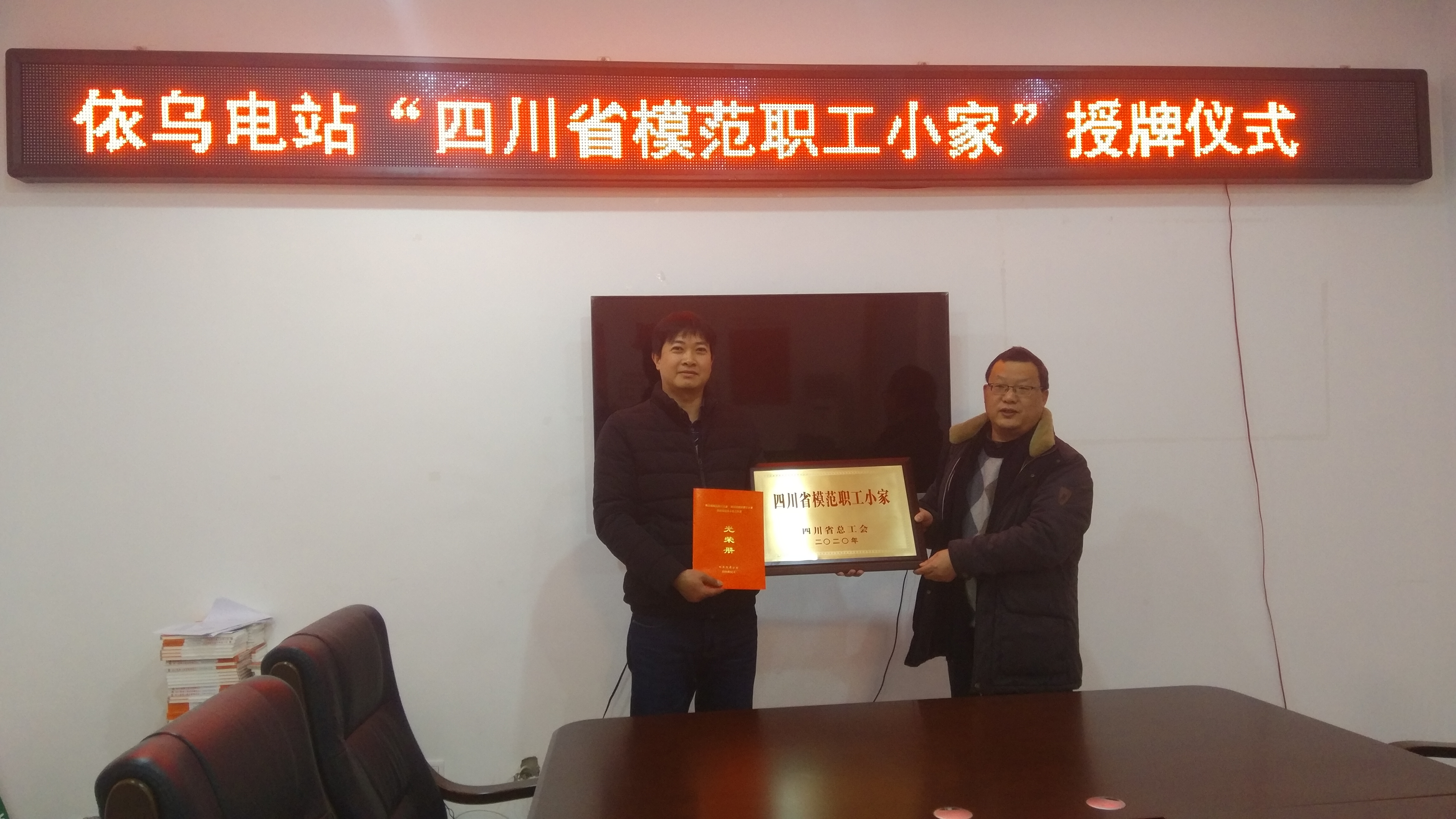 近日,金口河区总工会为“省级模范职工小家”依乌电站进行授牌,金口河区总工会副主席连永斌主持授牌仪式并向依乌电站授牌。