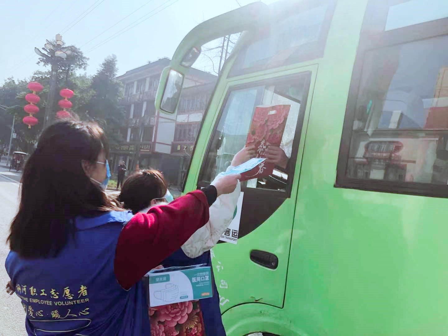 职工志愿者为坚守在岗位的客车司机发放口罩和春节大礼包,道声“您辛苦了”