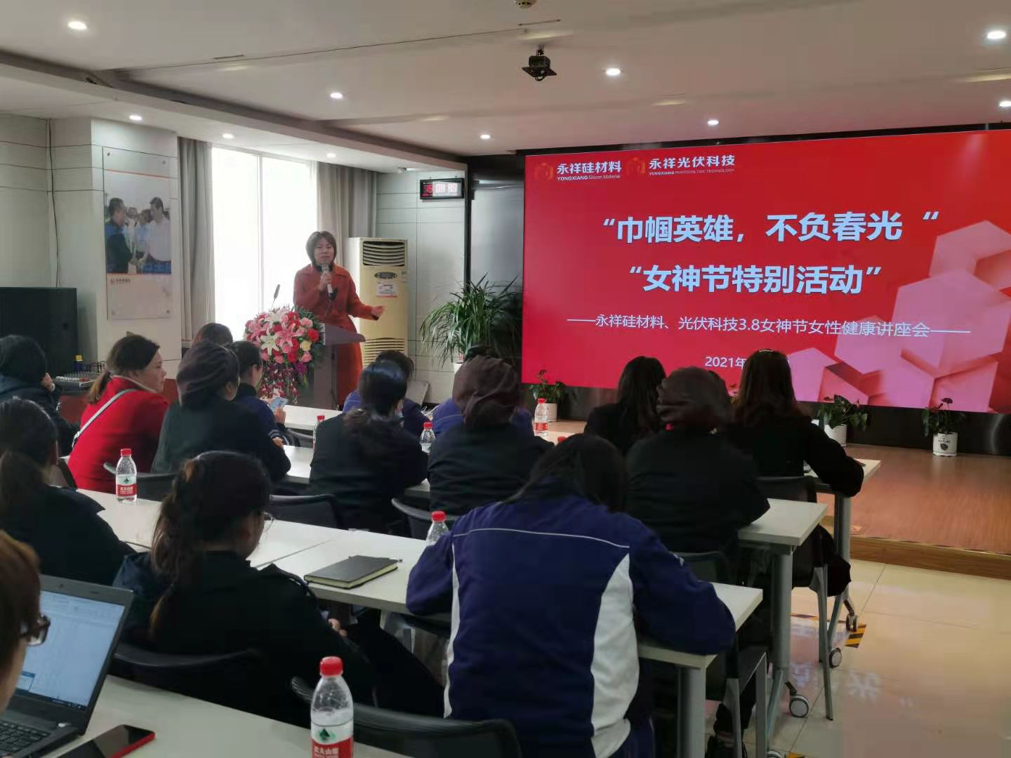 三八妇女节来临之际,五通桥区人民医院工会联合会组织妇产科及体检科负责人到永祥硅材料、光伏科技有限公司开展“巾帼英雄,不负春光”3.8女神节女性健康讲座活动。