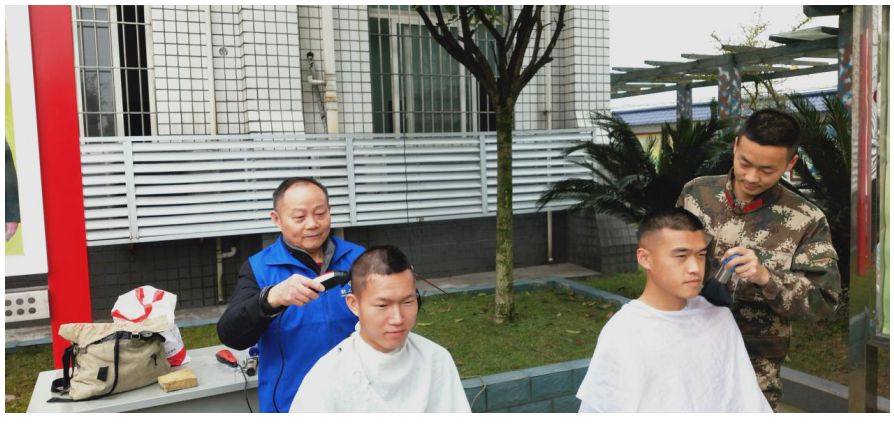 活动现场洋溢着军民一家亲的浓厚气氛。省劳模、夹江职工志愿服务分队队长黎同云一边熟练地为官兵理发,一边对他们进行党史宣讲,希望战士们立足本职,发挥先锋作用,发扬党的优良传统,练好过硬本领,报效祖国和人民。黎同云说道:“志愿服务是发扬军爱民、民拥军光荣传统的重要形式,为巩固和发展军民团结,汇聚强国兴军强大力量,我们职工志愿服务队将继续开展各种活动,以实际行动,向我们伟大的中国共产党成立100周年献礼!”