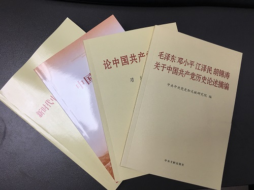 在党支部书记的带领下,全体党员干部认真学习了《论中国共产党历史》《毛泽东、邓小平、江泽民、胡锦涛关于中国共产党历史论述摘编》《中国共产党简史》《习近平新时代中国特色社会主义思想学习问答》四本书籍。