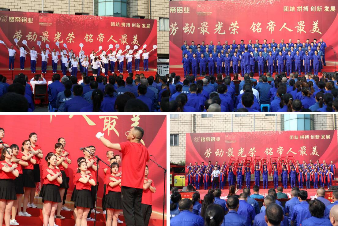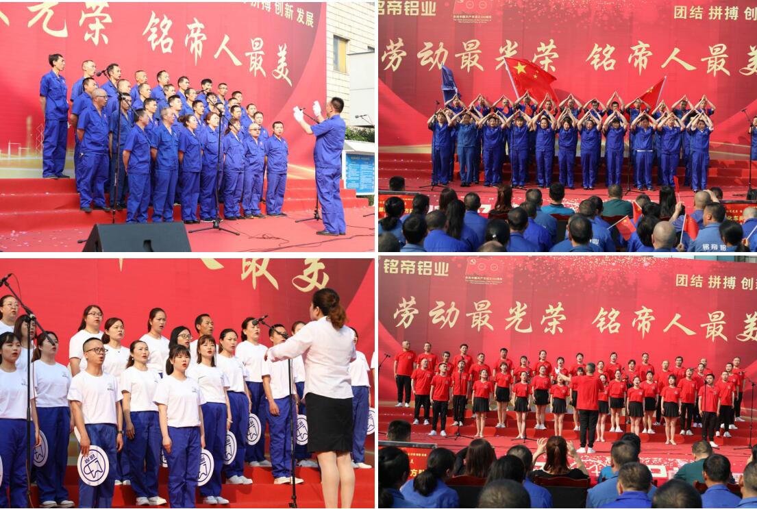 为庆祝中国共产党成立100周年,喜迎第131个“五一”国际劳动节,丰富员工的精神文化生活,提升团队的凝聚力、向心力,增强员工的集体荣誉感和责任感,弘扬企业文化和铭帝精神,2021年5月1日,四川铭帝铝业迎来了公司成立以来阵容最大、参与率最高的“劳动最光荣.铭帝人最美”职工歌咏比赛。他们用音乐重温党史,用歌声铭记初心,呈现了一场高水平的视听盛宴。铭帝铝业(集团)董事长邓春安先生及夫人开钰女士,夹江县漹城镇第三小学校党支部书记、校长陈万虹,漹城三小各位评委老师及铭帝铝业800多名一线职工参与此次活动。