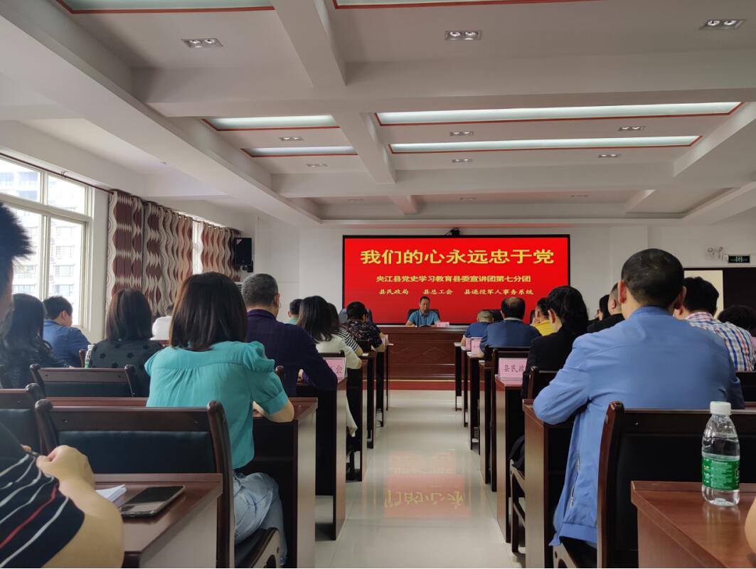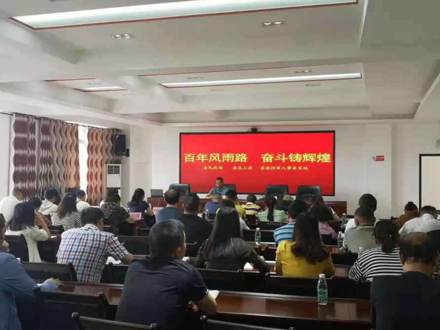 5月26日,夹江县退役军人事务系统,县民政局、县总工会机关全体党员干部,在县总工会五楼会议室集中进行党史教育学习宣讲会。退役老党员、一等战斗功臣王敏作党史教育宣讲报告。