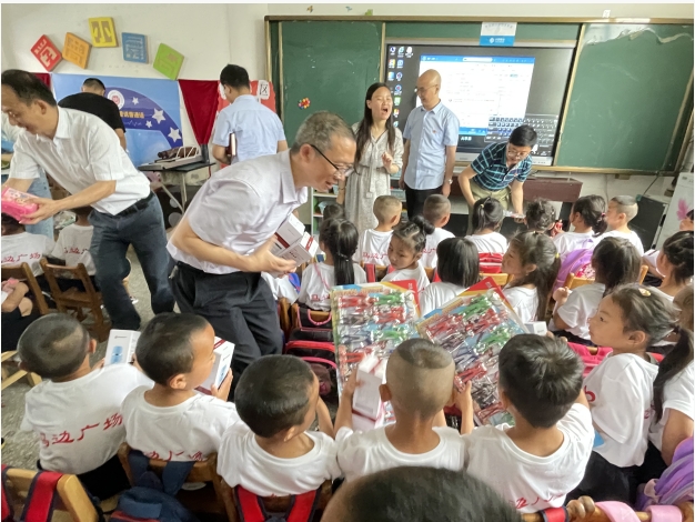 6月1日,市总工会党组书记、常务副主席黄国兵带队,市总工会党组成员、经审会主任程学铭及市总工会相关工作人员一行,携市机关幼儿园两名骨干教师,前往对口帮扶的马边彝族自治县高卓营乡,为当地中心校幼儿园的彝族孩子们送去节日的礼物和祝福,并进行现场授课。
