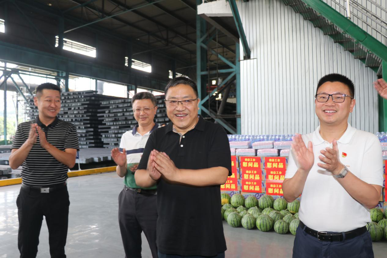 杜长江一行先来到德胜钒钛公司轧钢车间,慰问了在高温下工作的一线职工,将毛巾、矿泉水、西瓜等防暑降温物品递到他们手上,送上了工会组织的关心关爱。叮嘱企业要继续做好职工防暑降温工作,引导职工科学合理安排作息时间,确保夏季高温季节职工群众的生产安全和身心健康。同时,要求企业定期开展安全生产教育培训,切实提高职工安全意识和自我保护意识。