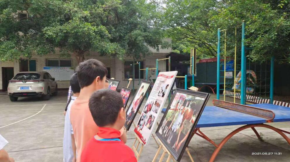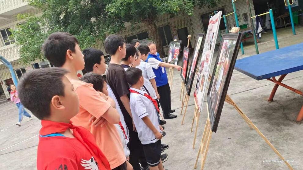 随后,志愿者们为同学们赠送一面五星红旗,和师生齐唱《没有共产党就没新中国》,引导少年儿童坚定理想信念,学史明理、学史增信、学史崇德、学史力行,呼吁同学们从小要热爱五星红旗,热爱我们自己的祖国。在接下来的家风家教主题展中,志愿者们引导着同学们观看展板并耐心讲解,鼓励他们向雷锋学习,要乐于助人、奉献社会,传承优良家风,弘扬中华优秀传统文化。