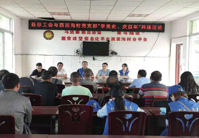 为深入推进党史学习教育,庆祝党的百年华诞,助力乡村振兴,6月22日,马边县总工会党支部与高卓营西泥沟村党支部联合开展“学党史、庆百年”党建共建活动。