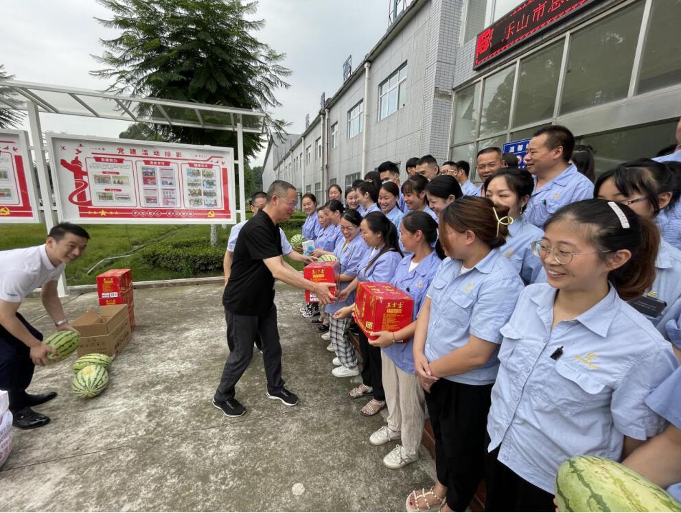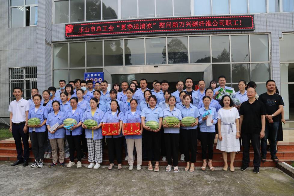 夏日炎炎,持续高温。为切实做好职工安全生产和夏季防暑降温工作,7月20日,乐山市总工会党组成员、副主席兰宁一行,带着对高温一线职工的牵挂与关心,深入夹江县新万兴碳纤维复合材料有限公司开展“夏送清凉”活动,慰问高温下坚守一线职工。