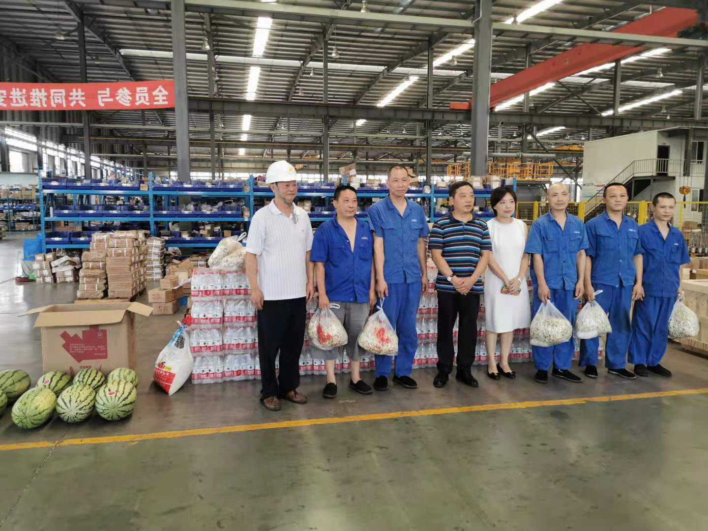 7月22日,市总工会二级调研员肖勇在高新区工会主席李希瑶陪同下,慰问奋战在生产一线的广大职工,为他们送去西瓜、矿泉水、菊花茶等防暑降温物品,送去工会对一线职工的关爱。肖勇指出,眼下正是高温季节,希望企业员工们在做好安全生产的同时,注意防暑降温,以更饱满的热情、更充沛的精力,投入到工作当中,同时要求企业多关心职工的诉求,合理安排工作时间,落实好防暑降温措施,保障职工的身体健康。(高新区工会)