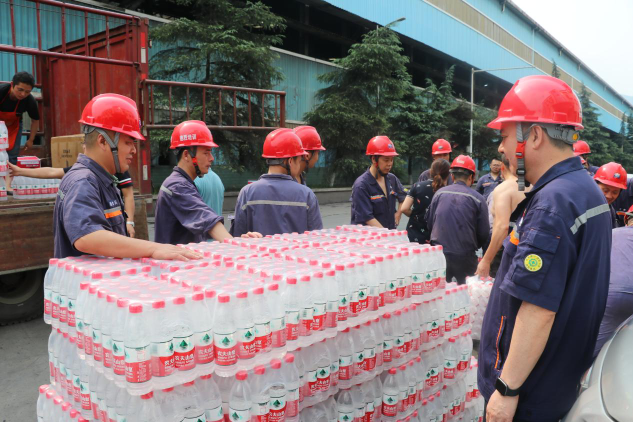 “感谢公司党政工团的关心关爱,高温击不退我们安全生产的意志和激情,动力能源厂全体职工将继续立足岗位、爱岗奉献、克服困难,保质保量完成各项生产任务目标...”接过慰问组送来的沉甸甸的防暑解暑物资用品,四川德胜集团钒钛有限公司动力能源厂行政科科长林胜表示。