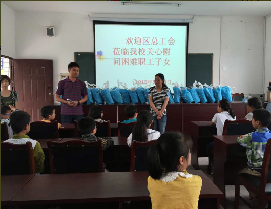 5月28日下午,市中区总工会组织20余名“职工志愿服务团”志愿者到土主镇中心小学,对20名困难职工、农民工子女进行了慰问,并送去了学习用具、糖果等慰问品。