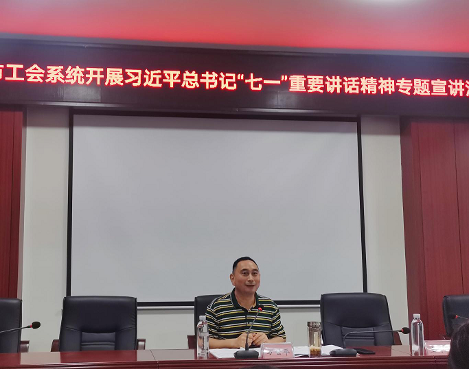 8月25日,峨眉山市委宣讲团第五分团到峨眉山市总工会开展习近平总书记“七一”重要讲话精神专题宣讲活动,全市基层工会主席及市总工会全体职工40余人参加。