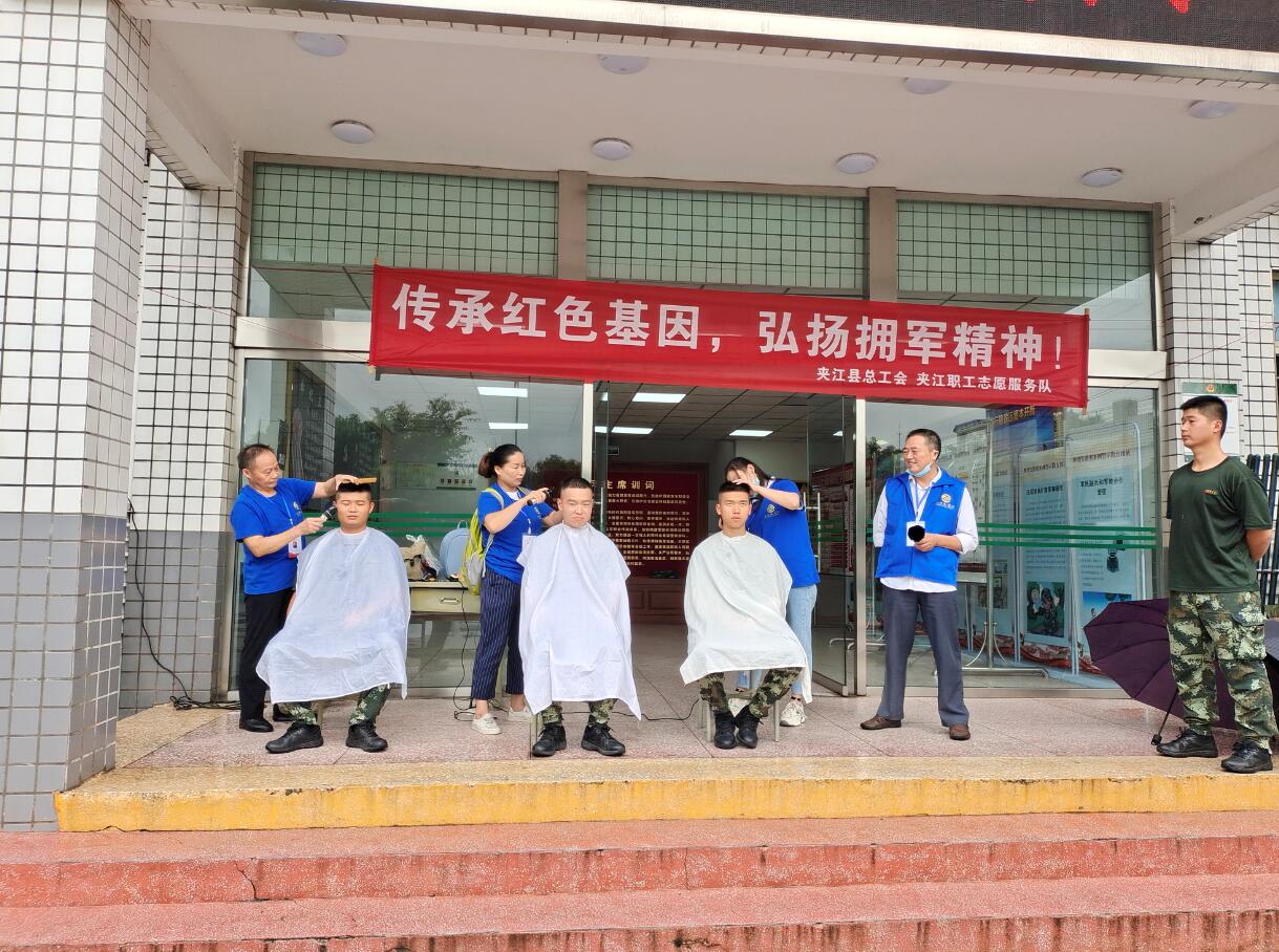 活动现场,志愿们冒着大雨来到驻夹武警部队,为人民子弟兵义务理发,让子弟兵们过个愉快的国庆节。夹江职工志愿服务队队长黎同云还代表全体志愿者,向子弟兵们常年累月的保夹江人民一方平安,为国防事业无私奉献精神表示了由衷的感谢。