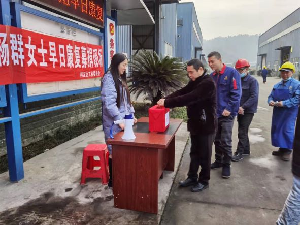 “好造孽哦!也好遭罪哦!希望她快点好起来,还非期待她弄的饭菜嘞...”1月13日9时许,四川省邦友达科技有限公司4号车间内人头攒动,工友们议论纷纷。随着该公司副总经理兼工会主席胡建兴动员并带头往捐款箱内投入几张现金后,其余人员结合自身实际依序为公司食堂厨师杨群献上一份爱心,合力在新春佳节来临之际为她送上公司党政工的温暖,和广大工友的关心关怀。