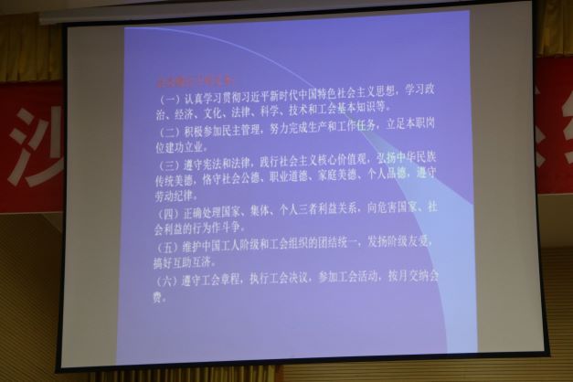 培训会前,区总工会党组书记、常务副主席廖盛义同志带领大家共同学习了新修订的《工会法》。他从突出坚持党的领导、突出完善指导思想、突出改革新的要求、突出工会主业主责、突出产业工人队伍改革、突出扩大工会组织覆盖面等方面对修改的条文进行逐一详细的解读,进一步使工会干部对《工会法》修改的内涵有了更深刻的认识和理解。同时,廖主席要求参会学员:一是要统一思想,充分认识开展此次培训会的重要性和必要性;二是要学用结合,切实将学习培训转化为内在动力;三是要严肃认真,确保学习培训取得良好效果。