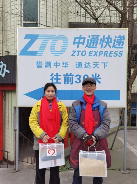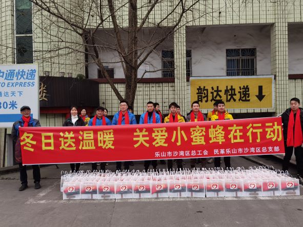 冬日送温暖·关爱“小蜜蜂”--沙湾区总工会、民革沙湾总支开展关爱快递小哥慰问活动